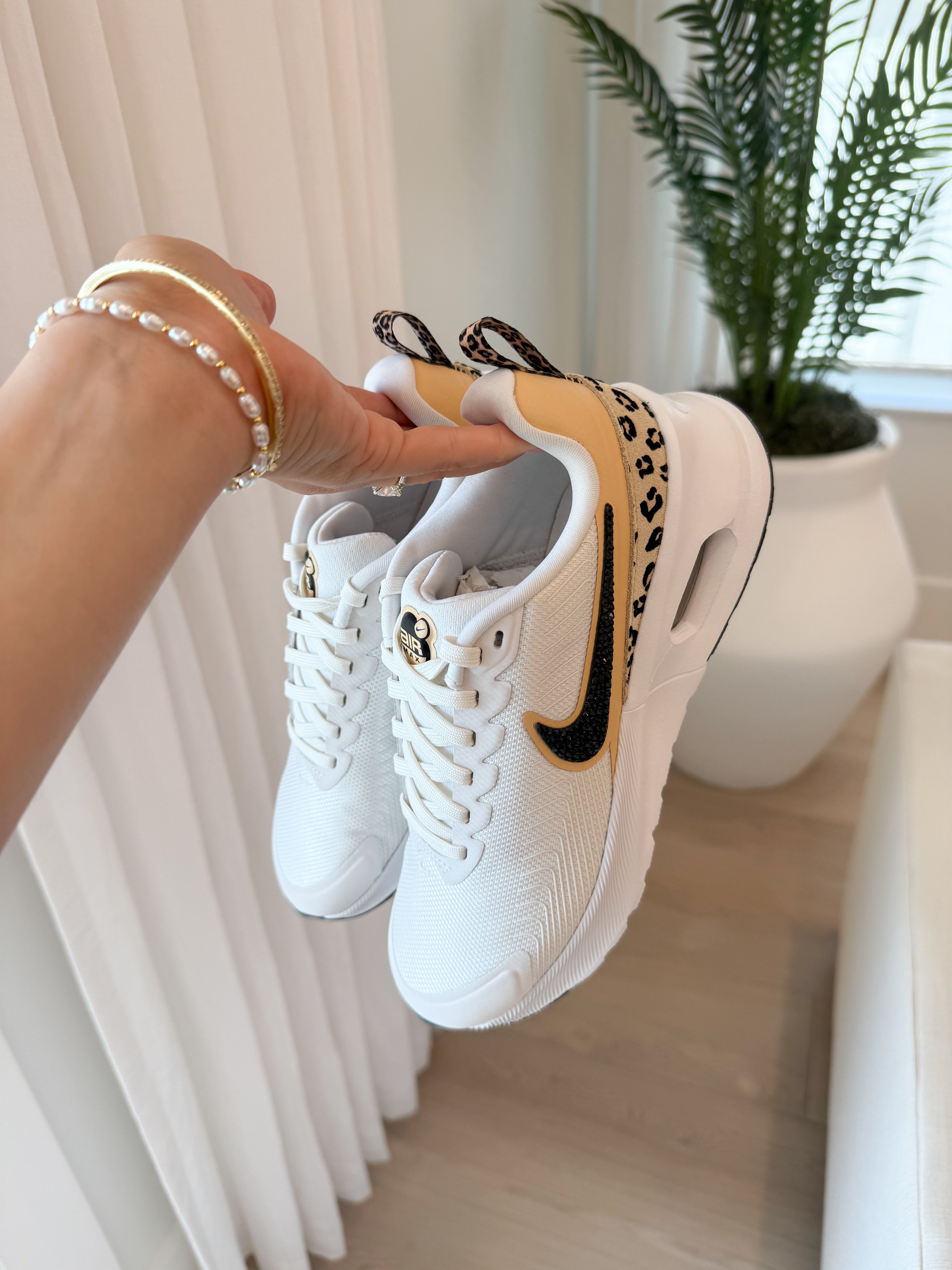 White Gold Leopard Animal Print Swarovski Womens Nike Air Max