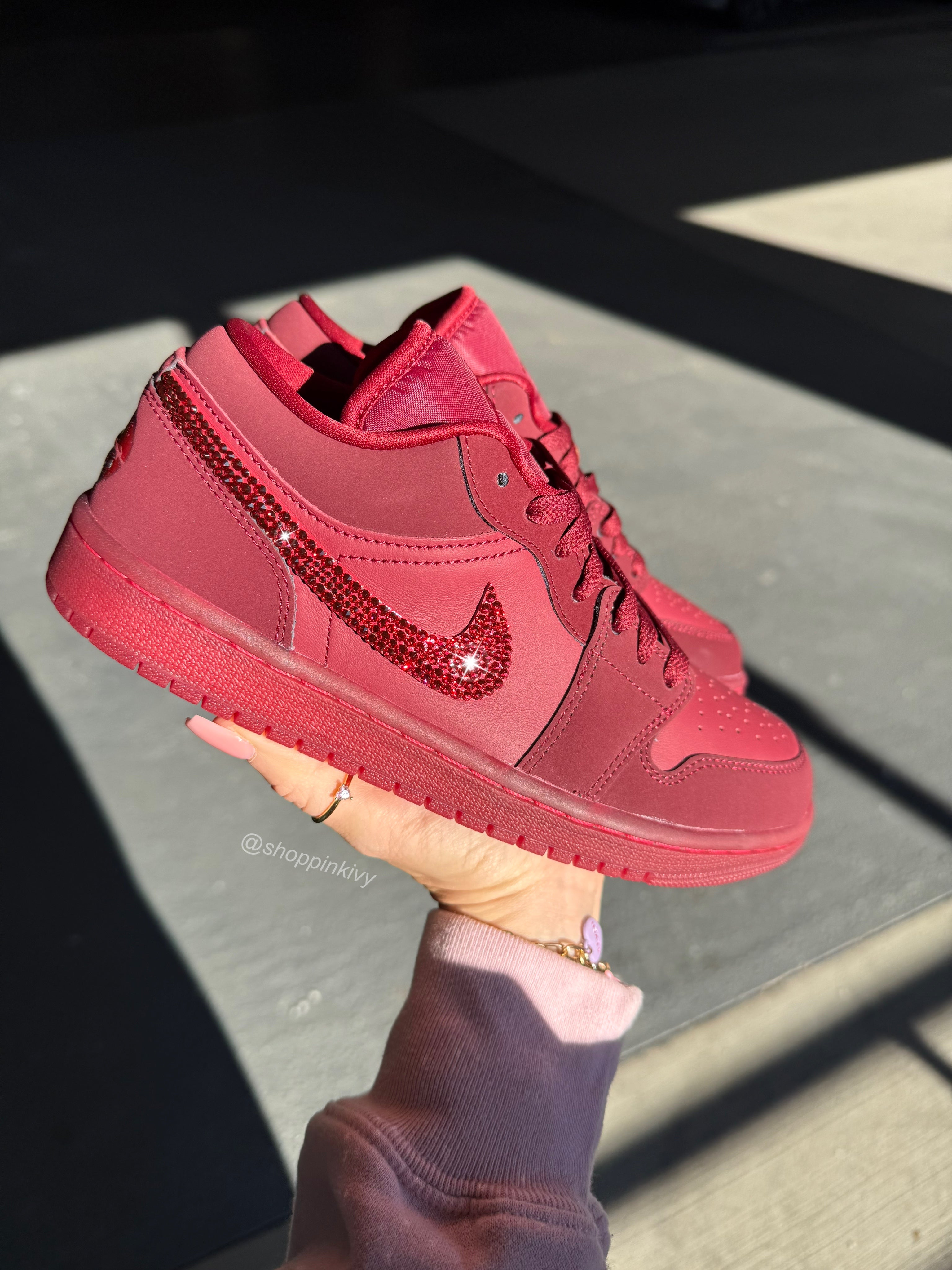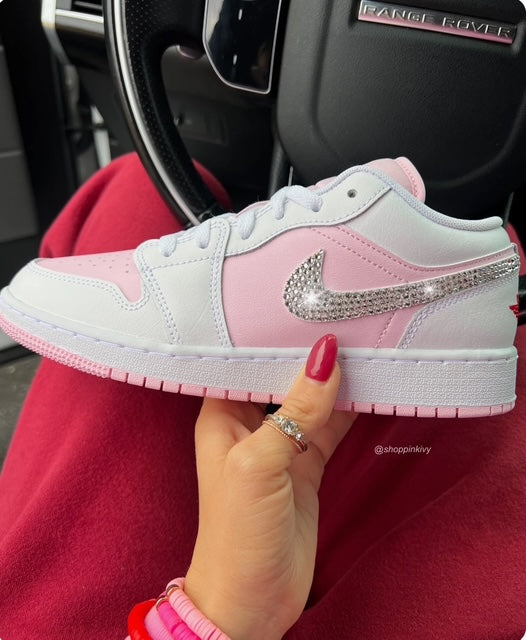 NEW Pink and White Swarovski Women’s Air Jordan 1 Low Shoes