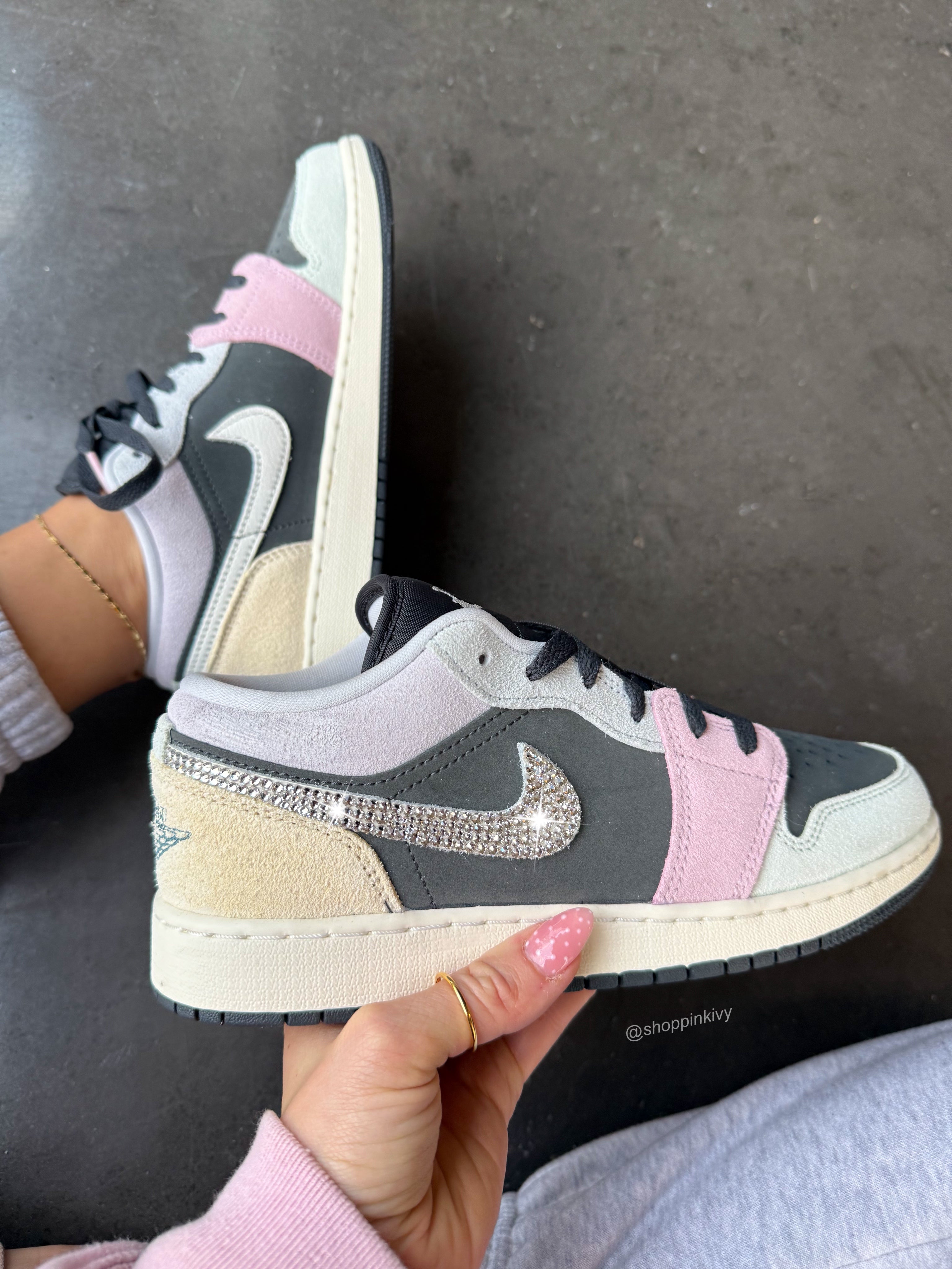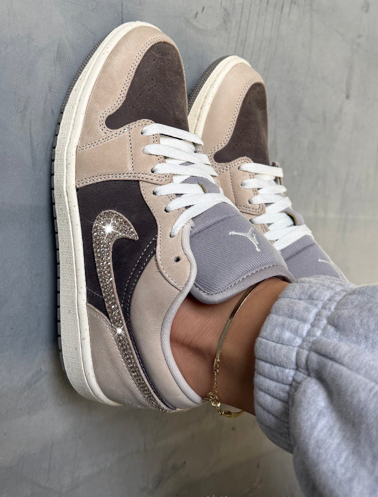 Neutral Gray Blush Swarovski Women’s Air Jordan 1 Low Shoes