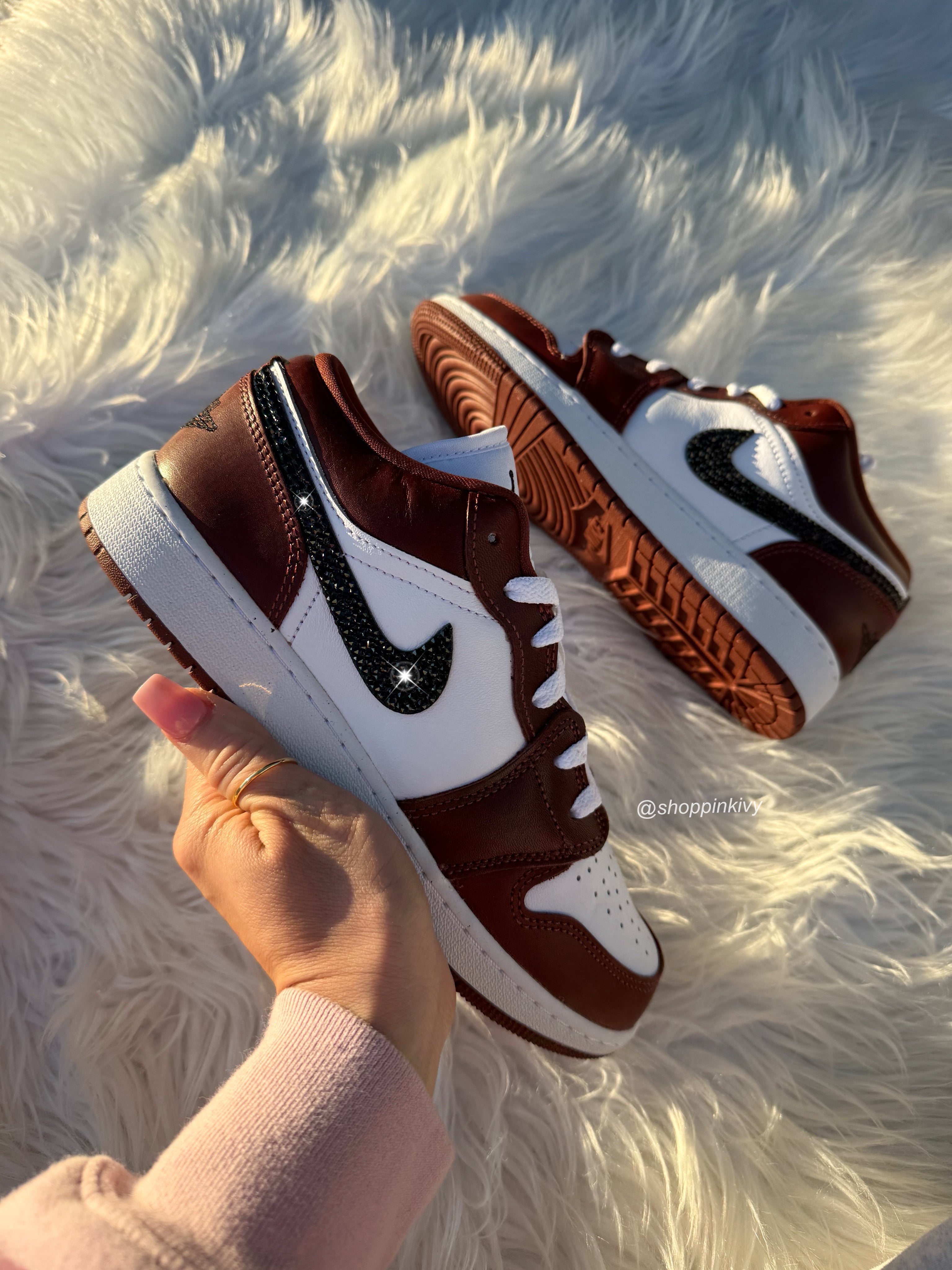 Rare Coffee Brown Swarovski Women’s Air Jordan 1 Low Shoes